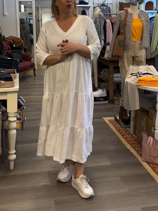 Women's casual V-neck short-sleeved cotton and linen dress
