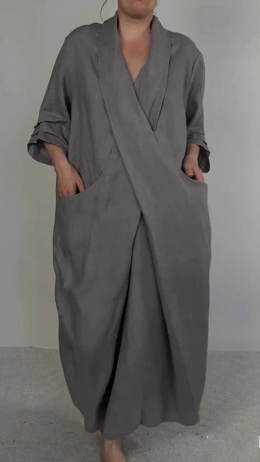 Women's Comfortable V-Neck Cotton And Linen Dress