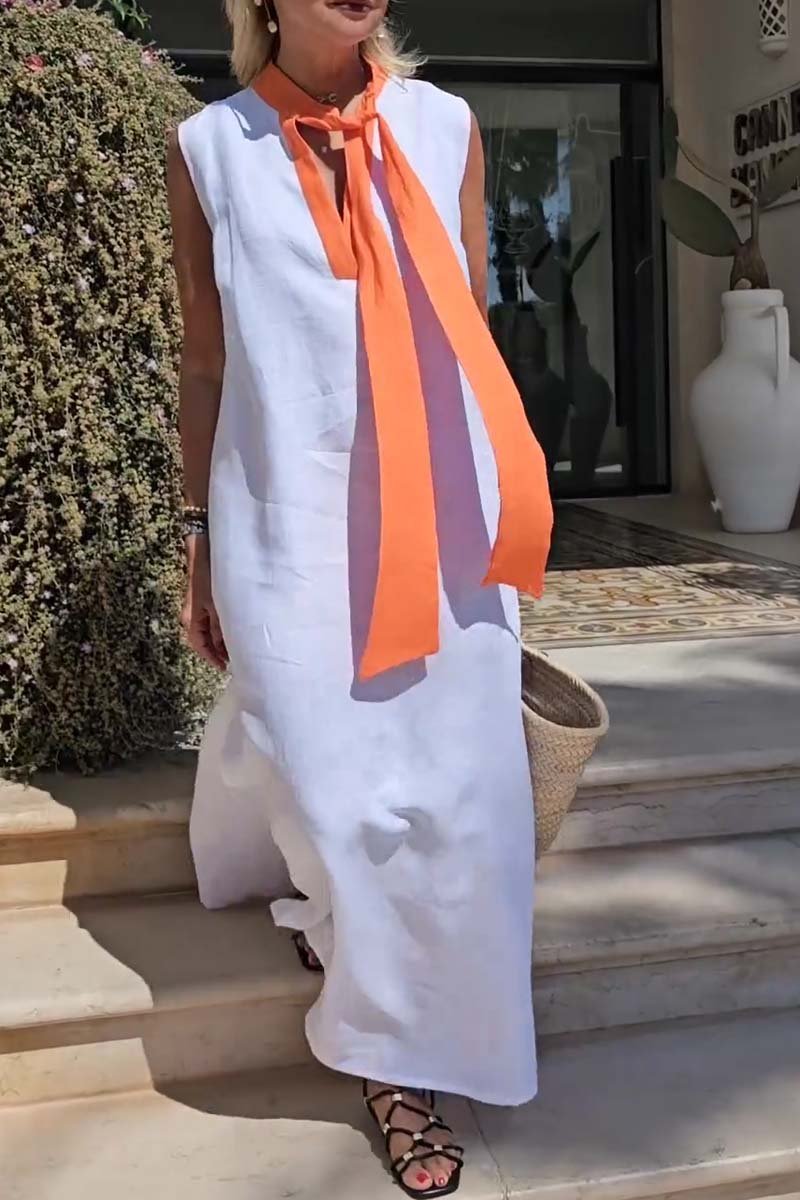 Women's casual neckline contrast sleeveless cotton and linen dress
