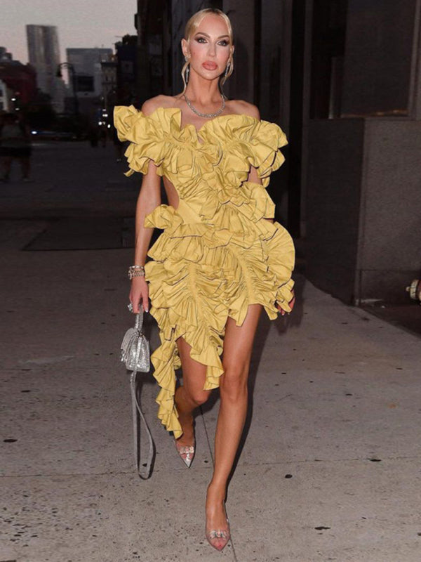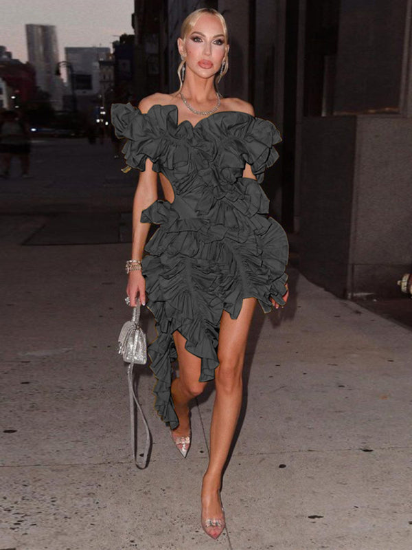 This women's mini dress is a stunning blend of elegance and allure. Featuring a sleeveless, backless design, it highlights your silhouette beautifully. The pleated details add texture and sophistication, while the irregular buckle accents create a unique and trendy touch. Perfect for a night out or special occasion, this dress effortlessly combines sexy and chic elements for a head-turning look.