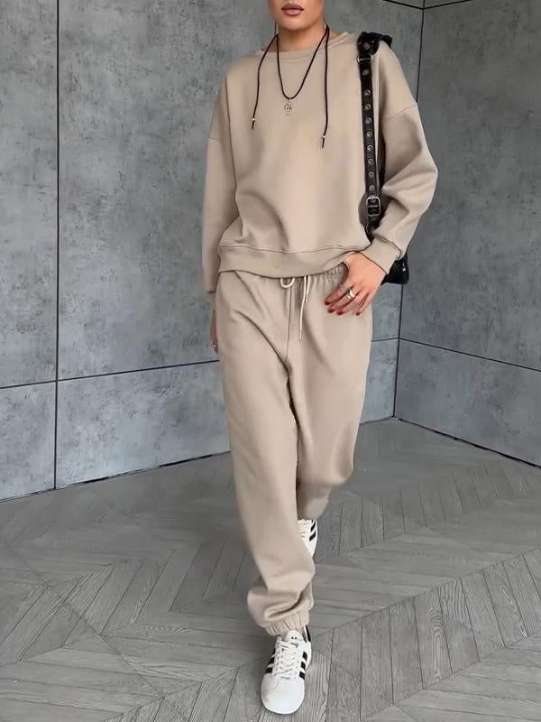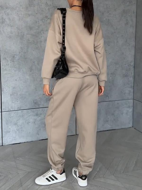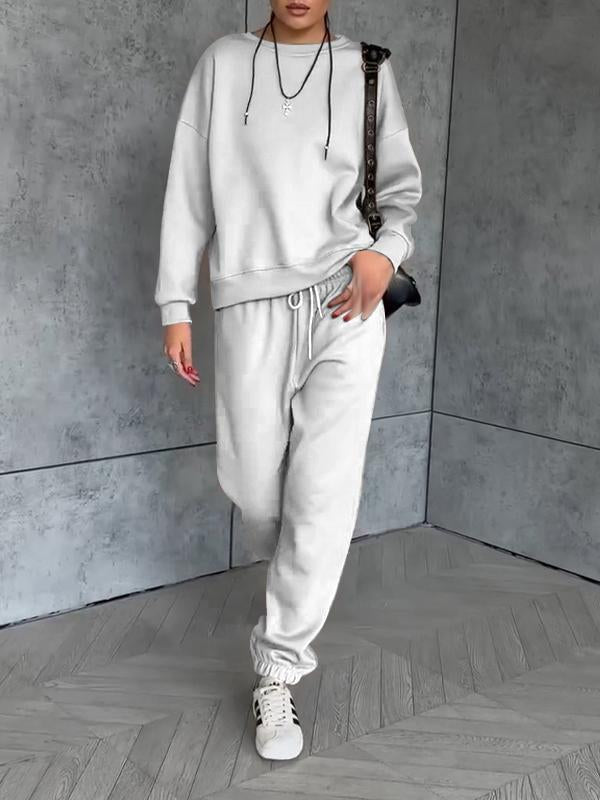Women's Round Neck Solid Color Long Sleeve Sports Two-piece Suit