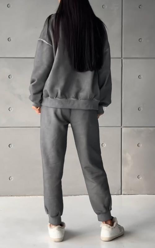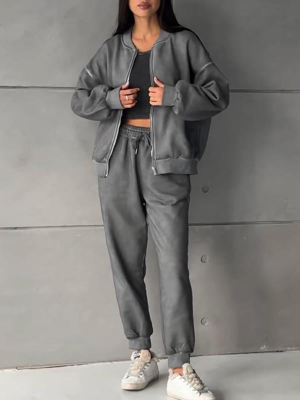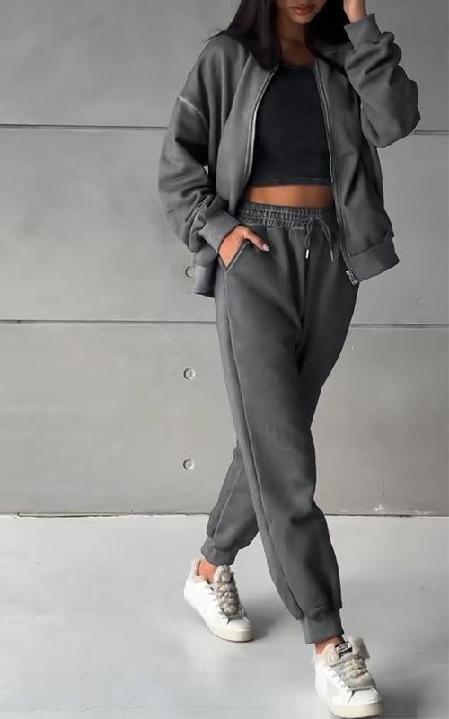 Women's Round-neck Solid Color Zippered Sports Two-piece Suit