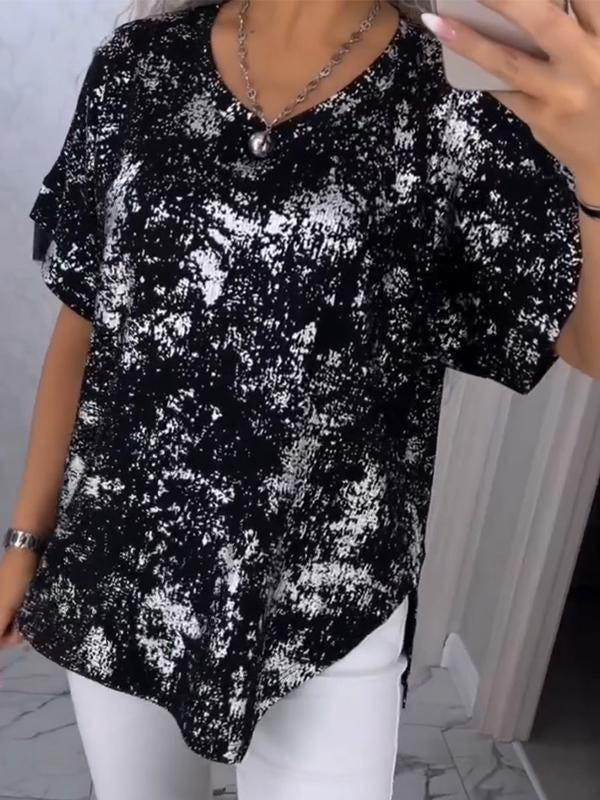 Women's V-neck Gold-stamped Short-sleeved T-shirt